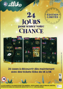 FDJNos servicesNouveautées 🎁 Le Calendrier de l’Avent Illiko « 24 Jours pour tenter votre Chance » est arrivé ! Une question sur l'un des jeux Illiko du calendrier ? N'hésitez pas à nous la poser lors de votre visite ! Lire la suite ->